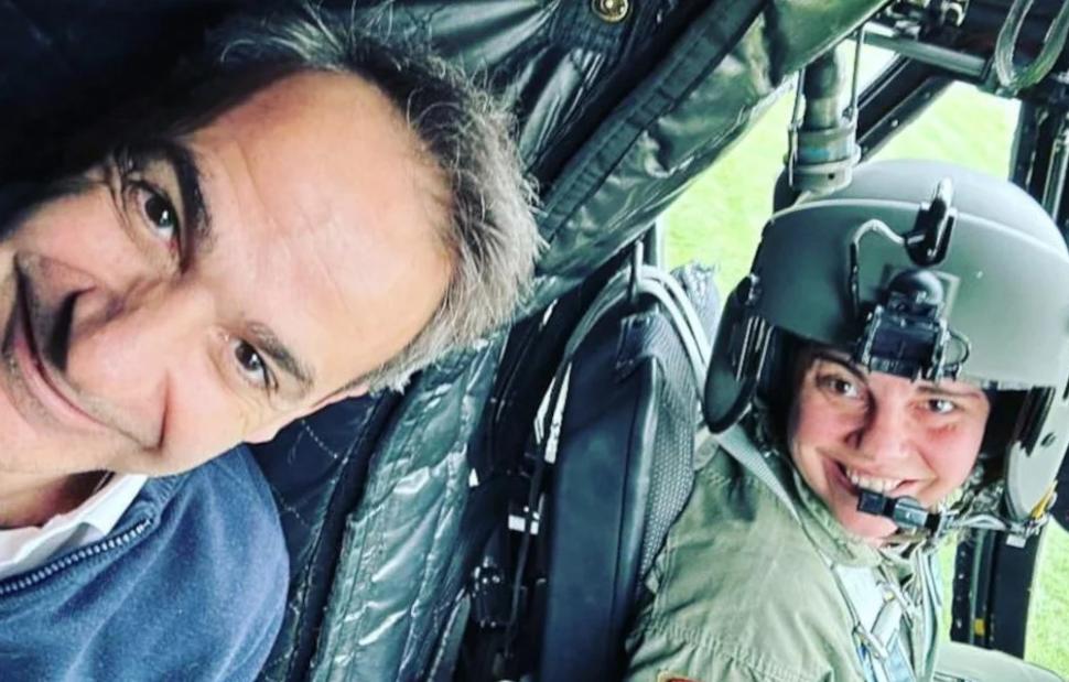 «Με την Λοχαγό (ΑΣ) Παναγιώτα Τεργιαζοπούλου. Η πρώτη γυναίκα κυβερνήτης σε ειδικό μέσο της Αεροπορίας Στρατού. Είμαι σίγουρος ότι πολλές γυναίκες θα ακολουθήσουν το παράδειγμα της», έγραψε ο κ. Μητσοτάκης στην ανάρτηση του.