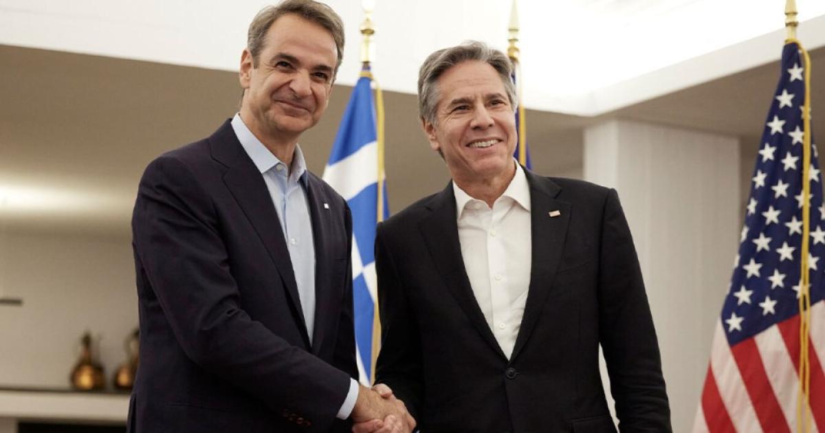 Ο πρωθυπουργός στον σύντομο διάλογο μπροστά στις τηλεοπτικές κάμερες καλωσόρισε τον υπουργό Εξωτερικών των ΗΠΑ, 'Αντονι Μπλίνκεν επισημαίνοντας ότι υπάρχει ένας συμβολισμός για το βάθος των σχέσεων των δύο χωρών, που βρίσκονται στο καλύτερο σημείο που έχουν υπάρξει ποτέ.