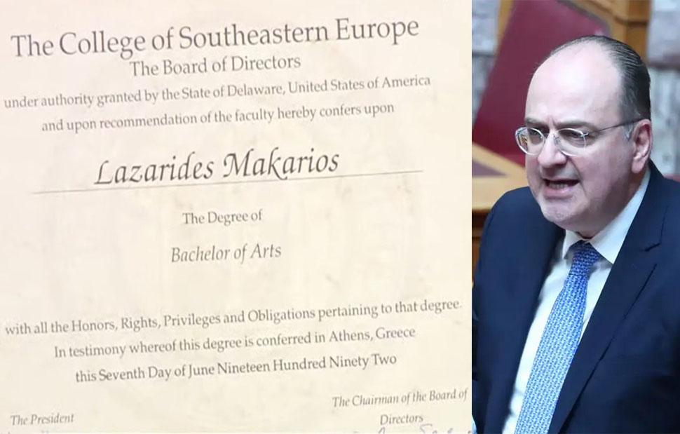 Το πτυχίο που πήρε το 1992 από το The College of Southeastern Europe έδειξε on air ο υφυπουργός Αγροτικής Ανάπτυξης, Μακάριος Λαζαρίδης, υποστηρίζοντας ότι «το 2007 μπορούσες να εργαστείς ως μετακλητός υπάλληλος ακόμα και με αυτή τη βεβαίωση σπουδών παρά το ότι δεν ήταν αναγνωρισμένη. Διότι οι μετακλητοί διορίζονται με πολιτική επιλογή του υπουργού του βουλευτή δεν περνούν από ΑΣΕΠ και κατά συνέπεια δεν προβλέπεται τυπικός έλεγχος προσόντων όπως για κάποιον μόνιμο υπάλληλο».