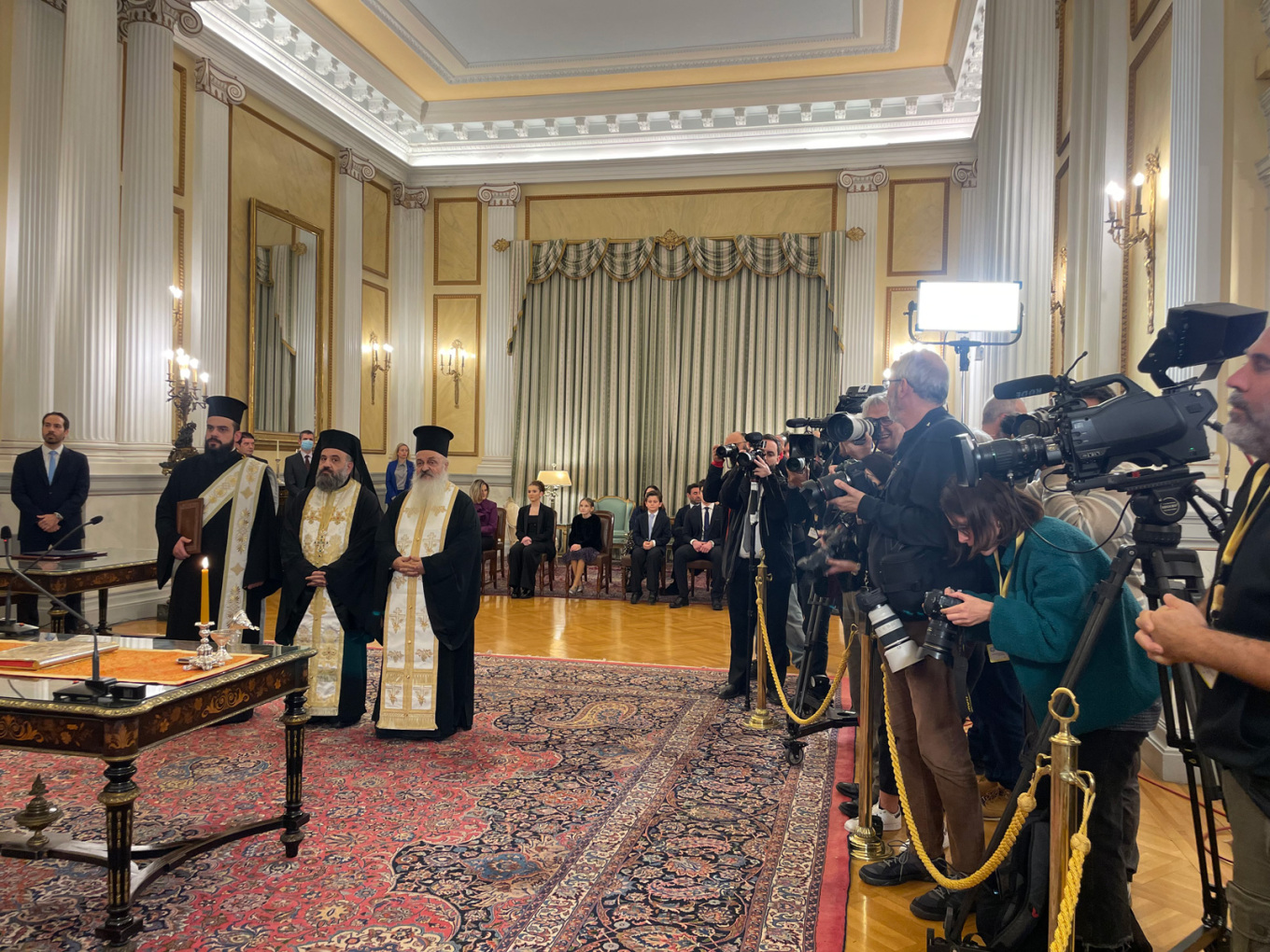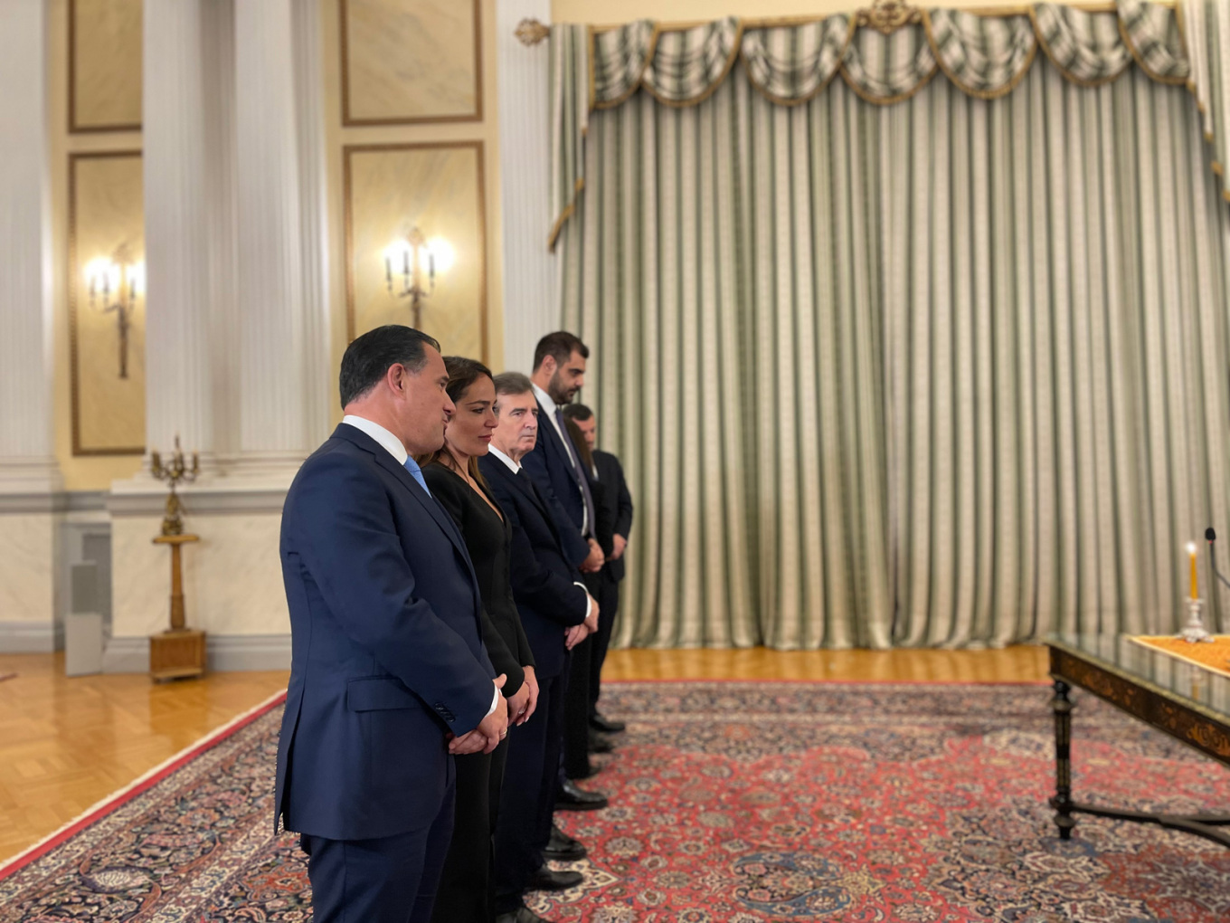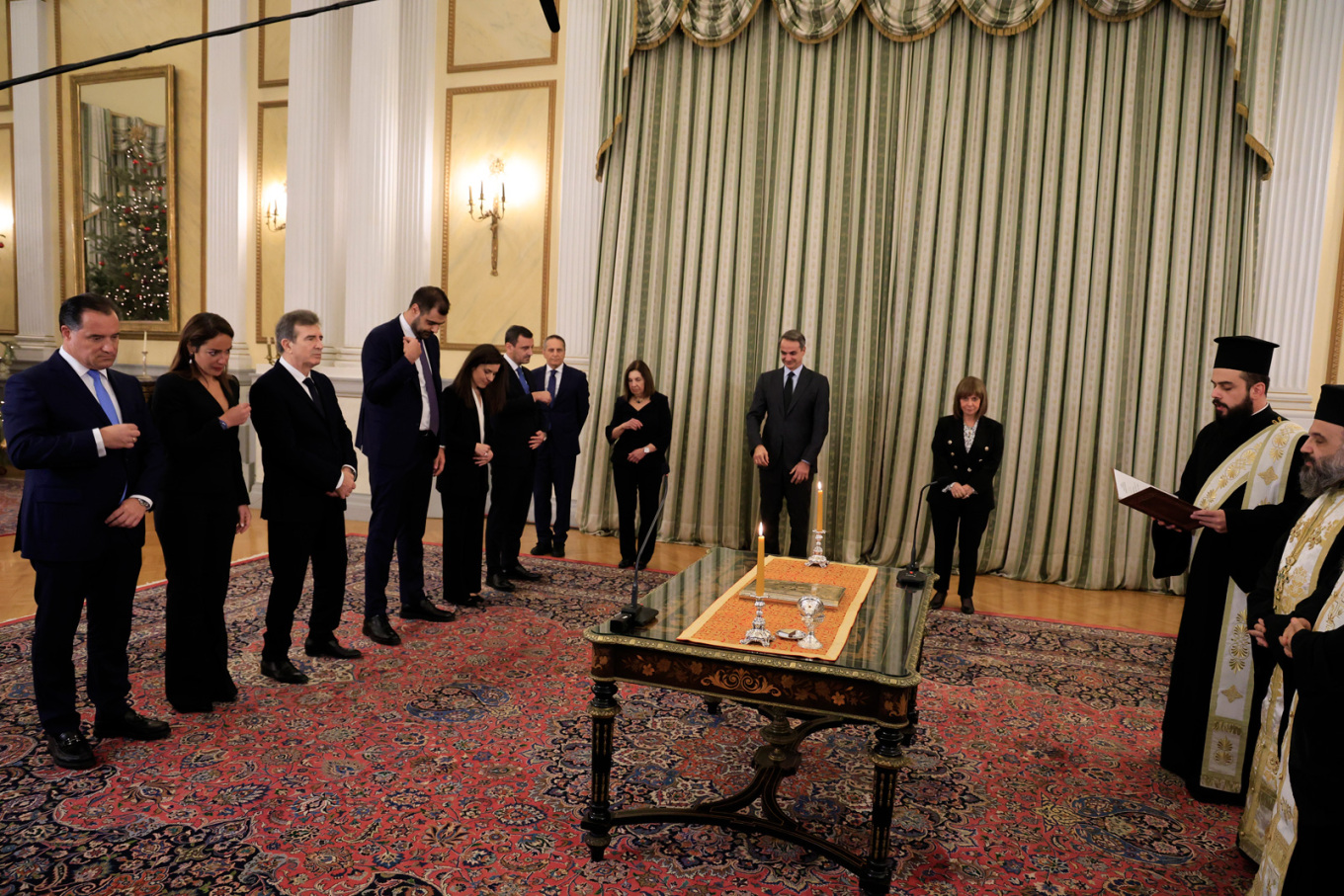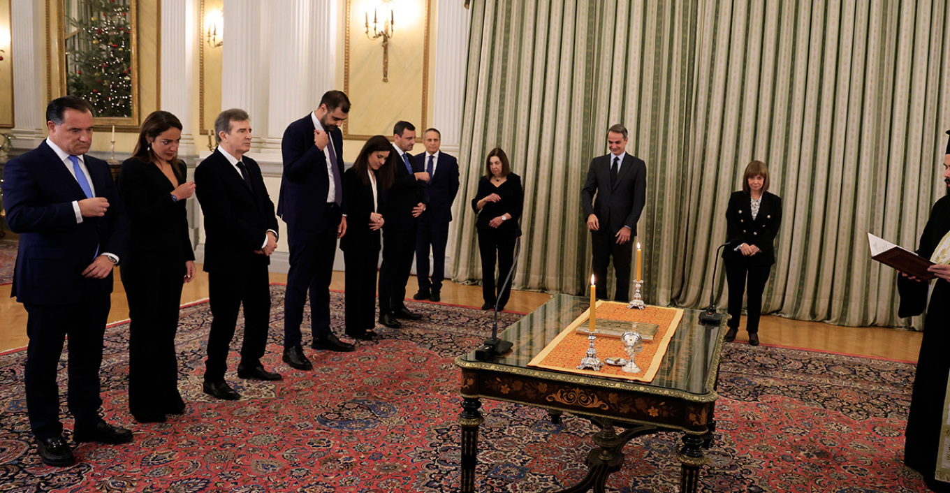 Αμέσως μετά τον θρησκευτικό όρκο, τα νέα μέλη του υπουργικού συμβουλίου υπέγραψαν το πρωτόκολλο διορισμού τους και χαιρέτισαν την Πρόεδρο της Δημοκρατίας, Κατερίνα Σακελλαροπούλου και τον Πρωθυπουργό Κυριάκο Μητσοτάκη.