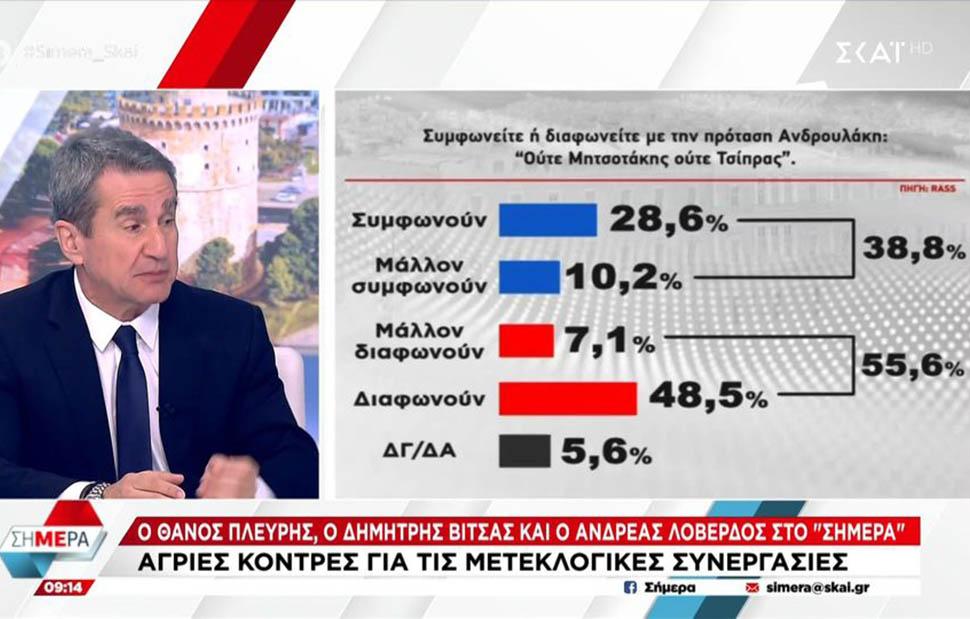 Ο βουλευτής του ΠΑΣΟΚ, Ανδρέας Λοβέρδος μίλησε στην εκπομπή "Σήμερα", στον ΣΚΑΪ για τη νέα δημοσκόπηση της RASS και τη διαφορά της ΝΔ από τον ΣΥΡΙΖΑ.