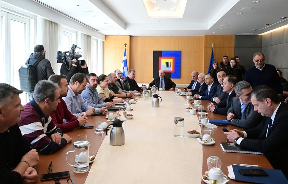 Κατά την είσοδό του στο κτίριο, ο υφυπουργός Αγροτικής Ανάπτυξης Γιάννης Αδριανός είπε «είμαστε εδώ για να βρούμε λύσεις», ενώ στη διάρκεια της συνάντησης αναμένεται να εξειδικευτούν τα μέτρα που εξήγγειλε η κυβέρνηση.