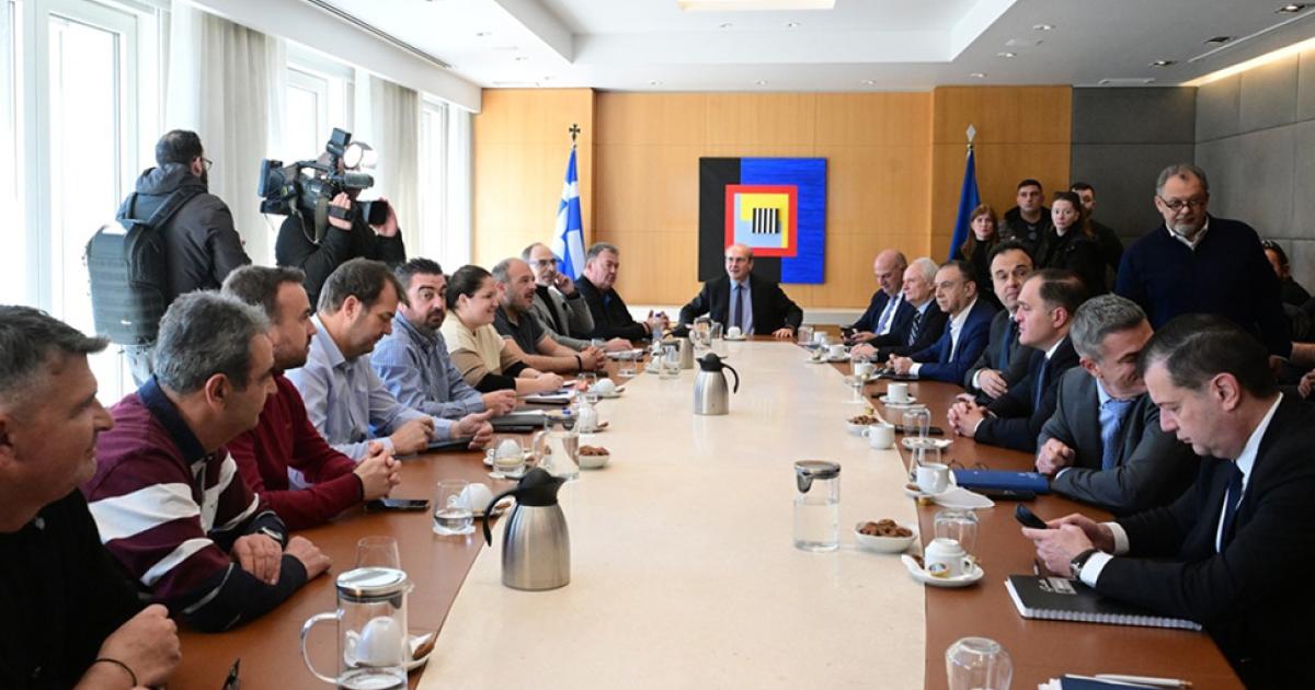 Στη συνάντηση συμμετέχουν ο αντιπρόεδρος της κυβέρνησης, ο υπουργός Αγροτικής Ανάπτυξης και Τροφίμων Κώστας Τσιάρας, ο υφυπουργός Οικονομικών Θάνος Πετραλιάς, καθώς και οι διοικητές της ΑΑΔΕ, Γιώργος Πιτσιλής και του ΟΠΕΚΕΠΕ, Ιωάννης Καβαδάς.
