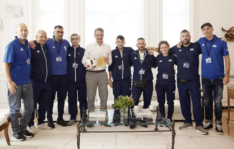 Συνάντηση με την Εθνική Ομάδα Ποδοσφαίρου Αστέγων πραγματοποίησε το πρωί ο πρωθυπουργός Κυριάκος Μητσοτάκης στο Μέγαρο Μαξίμου, ενόψει της συμμετοχής της ομάδας στο Παγκόσμιο Κύπελλο Αστέγων, το οποίο θα διεξαχθεί από 21-28 Σεπτεμβρίου στη Σεούλ της Νότιας Κορέας.