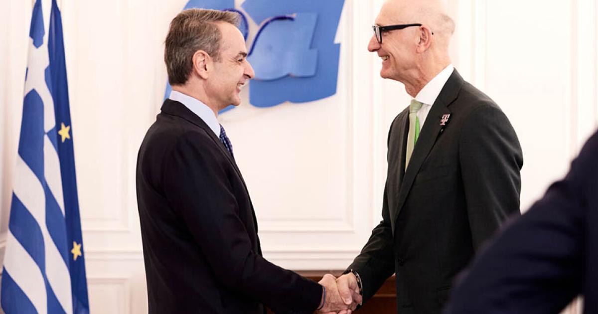 Με τον Διευθύνοντα Σύμβουλο του ομίλου Telekom, Timotheus Höttges, συναντήθηκε σήμερα στο Μέγαρο Μαξίμου ο Πρωθυπουργός Κυριάκος Μητσοτάκης.