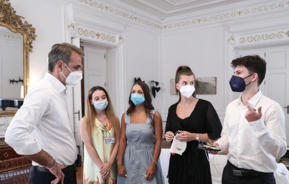 Ο Πρωθυπουργός συζήτησε με τους νέους για τις«start-up» και τα δημιουργήματα που ανέπτυξαν. Ειδικότερα, για τη Swim.me που απέσπασε το πρώτο βραβείο στον Πανευρωπαϊκό Διαγωνισμό Φοιτητικής Καινοτομίας και Επιχειρηματικότητας JA Europe Enterprise Challenge 2021 με το «έξυπνο» σκουφάκι για άτομα με προβλήματα όρασης και τη FlowOn που κέρδισε το δεύτερο βραβείο στον Πανευρωπαϊκό Διαγωνισμό Μαθητικής Καινοτομίας και Επιχειρηματικότητας JA Europe Company of the Year 2021 με την «έξυπνη βρύση» που καταπολεμά τη σπατάλη νερού και τη μετάδοση μικροβίων.