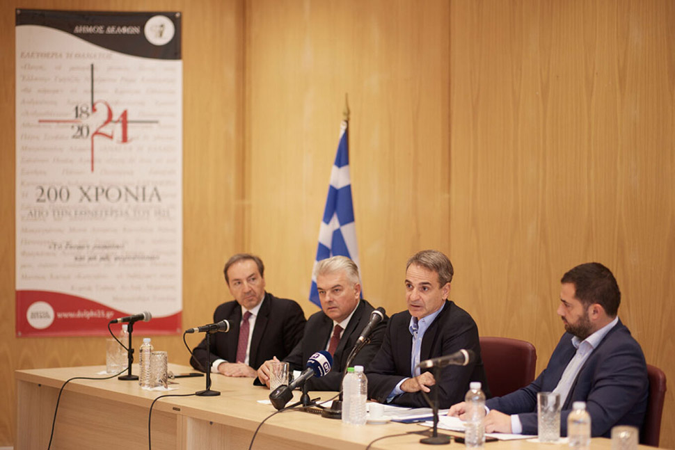 Κατά τη διάρκεια της σύσκεψης οι τοπικοί φορείς έθεσαν τα προβλήματα που αντιμετωπίζουν και αναζητούν λύση με τον Πρωθυπουργό να επισημαίνει ότι την επόμενη πενταετία έχει προγραμματιστεί να διατεθούν 600 εκατ. ευρώ στη Φωκίδα για δημόσιες επενδύσεις και κρίσιμες υποδομές οδικών διασυνδέσεων, άρδευσης και παραγωγής. Τόνισε την εφαρμογή ενός ολιστικού σχεδίου επτά σημείων το οποίο τίθεται σε εφαρμογή για την αποκατάσταση, αειφόρο ανάπτυξη και προστασία από την κλιματική αλλαγή του παραδοσιακού Ελαιώνα Άμφισσας. Ο Κυριάκος Μητσοτάκης έκανε ιδιαίτερη αναφορά στην αναβάθμιση, εκσυγχρονισμό και επέκταση του συνεδριακού κέντρου Δελφών, με πόρους που θα διατεθούν από το Ταμείο Ανάκαμψης και ΕΣΠΑ για συνεδριακό τουρισμό καθόλη τη διάρκεια του έτους.