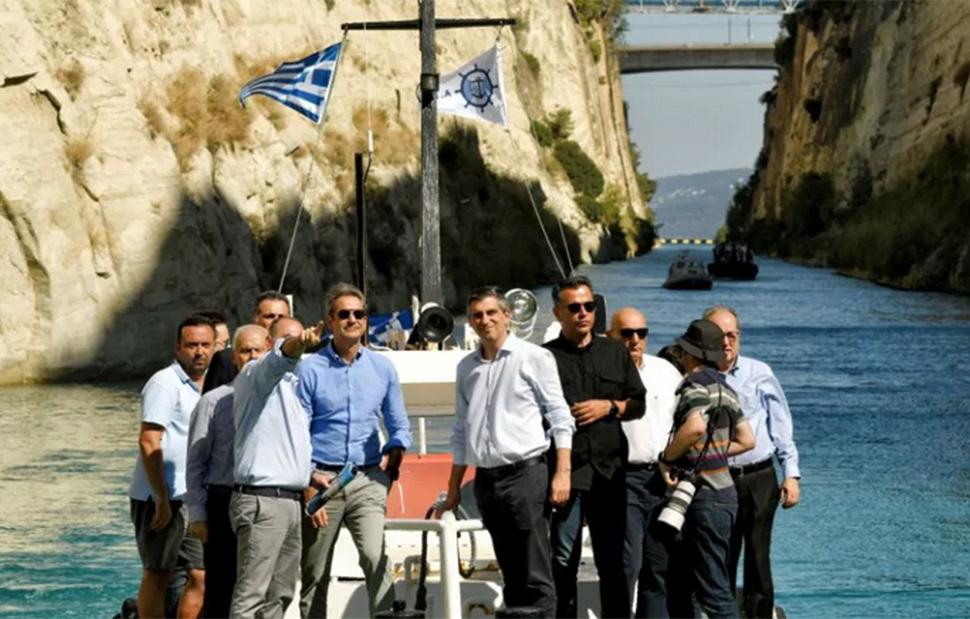 Ο πρωθυπουργός είχε τη δυνατότητα να διασχίσει με πλωτό μέσο τη Διώρυγα προκειμένου να ενημερωθεί για τα έργα, τα οποία παραδίδονται προσωρινά τη Δευτέρα 4 Ιουλίου, καθώς ολοκληρώνεται η πρώτη φάση των παρεμβάσεων μετά τις μεγάλες καταπτώσεις χωμάτινων όγκων που σημειώθηκαν τον Νοέμβριο του 2020, τον Ιανουάριο και τον Φεβρουάριο του 2021.
