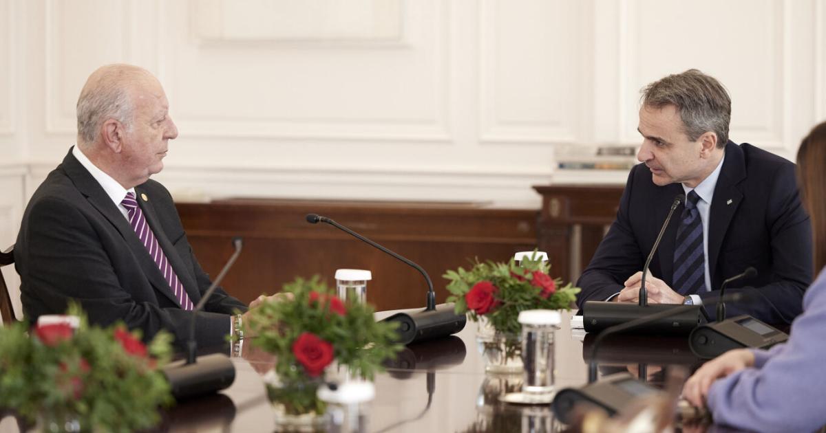 Συνάντηση με τον Δήμαρχο του κατεχόμενου Δήμου Μόρφου, Βίκτωρα Χατζηαβραάμ, είχε στο Μέγαρο Μαξίμου ο Πρωθυπουργός, Κυριάκος Μητσοτάκης.