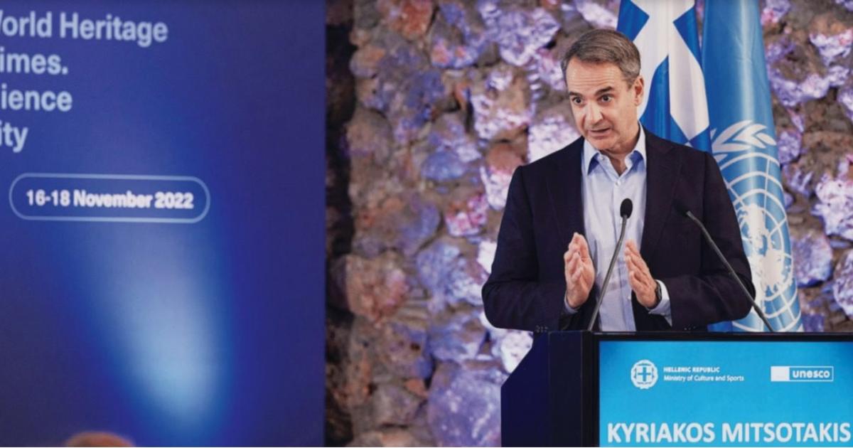 Ο Πρωθυπουργός αναφέρθηκε στις δύο απειλές που επηρεάζουν την πολιτιστική και φυσική κληρονομιά, την κλιματική κρίση και τον υπερτουρισμό.