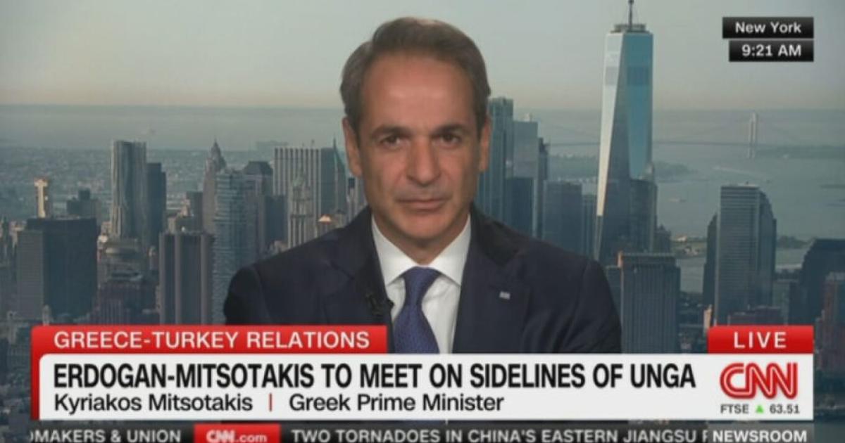 Στην οικονομία και στα ελληνοτουρκικά αναφέρθηκε ο Κυριάκος Μητσοτάκης σε συνέντευξη που παραχώρησε στο CNN, στο περιθώριο της παρουσίας του στη Νέα Υόρκη για τη Γενική Συνέλευση του ΟΗΕ και λίγο πριν από τη συνάντησή του με τον Πρόεδρο της Τουρκίας, Ταγίπ Ερντογάν.