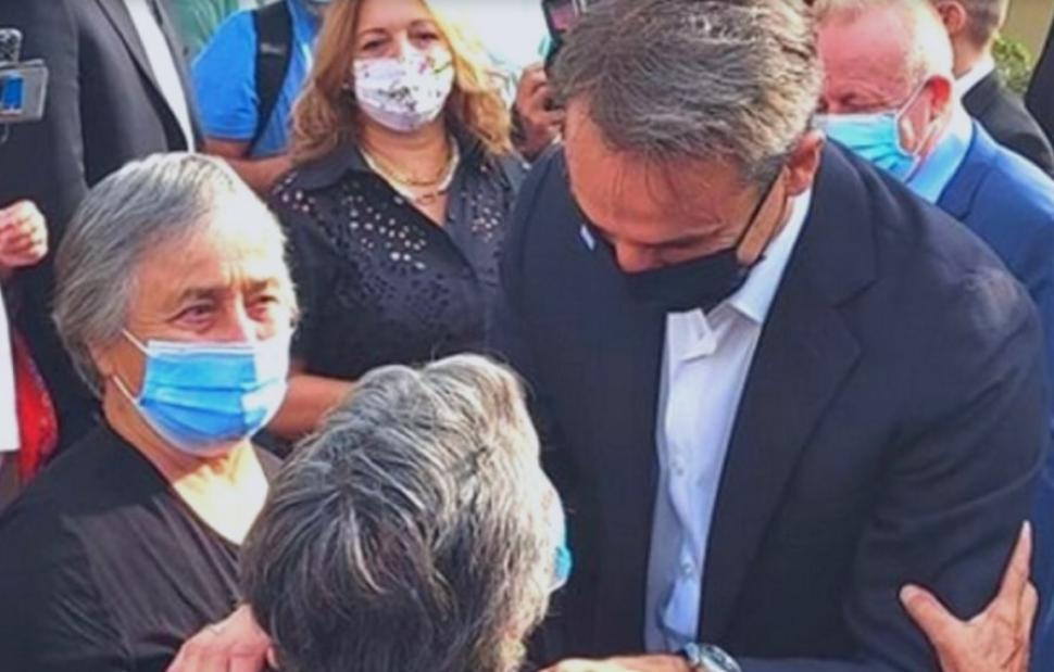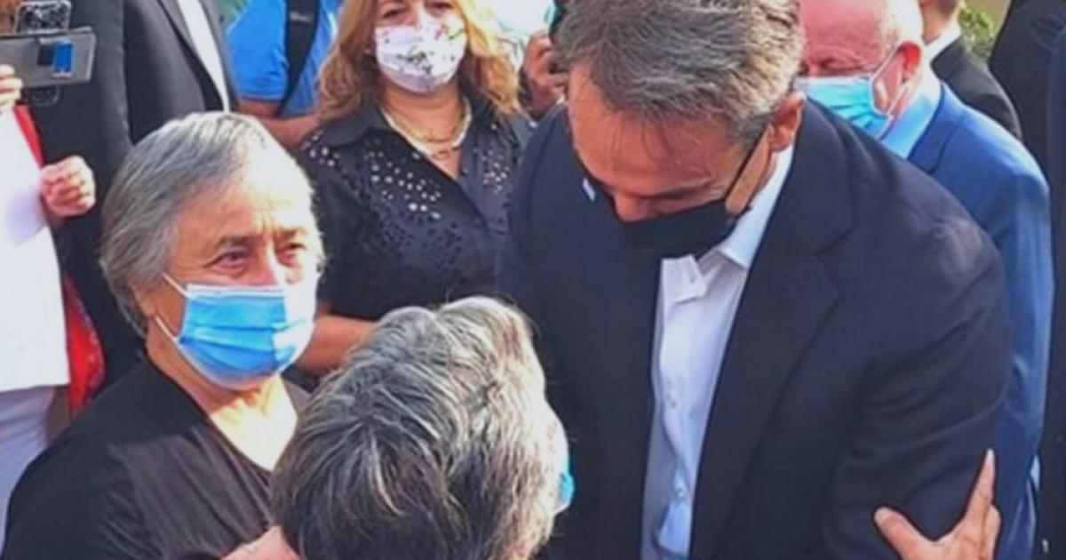 Αμέσως μετά τον αγιασμό, δύο σεισμόπληκτες ηλικιωμένες πλησίασαν τον Κυριάκο Μητσοτάκη και τον ρώτησαν τι θα γίνει με τα σπίτια που υπέστησαν ζημιές από τον σεισμό.
