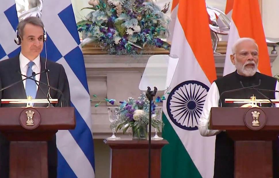 Κοινό μήνυμα εμβάθυνσης της συνεργασίας Ελλάδας και Ινδίας έστειλαν το πρωί της Τετάρτης Κυριάκος Μητσοτάκης και Ναρέντρα Μόντι στις δηλώσεις μετά τη συνάντηση που είχαν στο Νέο Δελχί με στόχο τον διπλασιασμό των εμπορικών συναλλαγών στις δύο χώρες μέχρι το 2030.