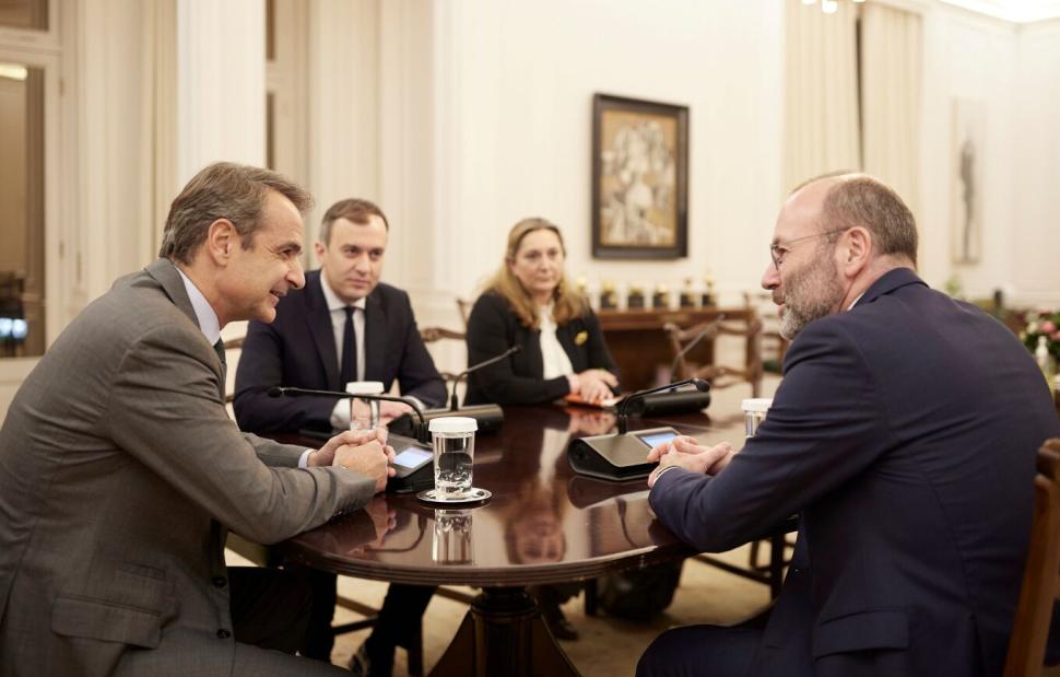 Mε τον πρόεδρο του Ευρωπαϊκού Λαϊκού Κόμματος και επικεφαλής της Κοινοβουλευτικής Ομάδας του ΕΛΚ στο Ευρωπαϊκό Κοινοβούλιο, Manfred Weber, συναντήθηκε στο Μέγαρο Μαξίμου ο Πρωθυπουργός, Κυριάκος Μητσοτάκης.