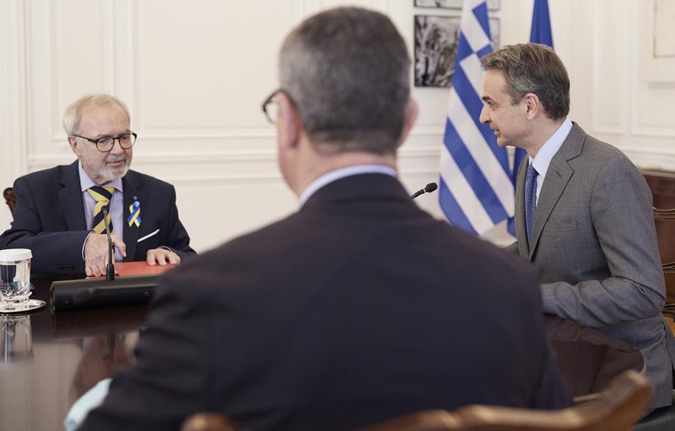 Κυριάκος Μητσοτάκης: Είναι χαρά μου που σας υποδέχομαι για μια ακόμη φορά στην Ελλάδα. Θα ήθελα να ευχαριστήσω εσάς και την Ευρωπαϊκή Τράπεζα Επενδύσεων για τη συνεχή στήριξη που έχετε προσφέρει στη χώρα και στην ελληνική οικονομία, στην πορεία της προς μια βιώσιμη ανάκαμψη. Φυσικά, όπως είχαμε την ευκαιρία να συζητήσουμε, αντιμετωπίζουμε τώρα μεγάλες ιστορικές προκλήσεις με τη ρωσική εισβολή στην Ουκρανία, καθώς και σημαντικές οικονομικές επιπτώσεις.