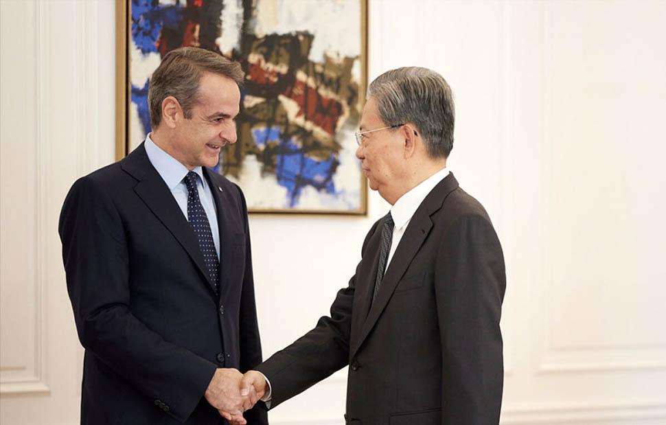 Ο πρωθυπουργός Κυριάκος Μητσοτάκης συναντήθηκε στο Μέγαρο Μαξίμου με τον Πρόεδρο της Διαρκούς Επιτροπής του Εθνικού Λαϊκού Κογκρέσου της Λαϊκής Δημοκρατίας της Κίνας, Zhao Leji.