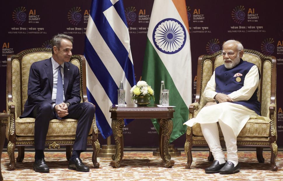 Ο Κυριάκος Μητσοτάκης συναντήθηκε με τον Πρωθυπουργό της Ινδίας, Ναρέντρα Μόντι, στο περιθώριο του AI Impact Summit στο Νέο Δελχί.