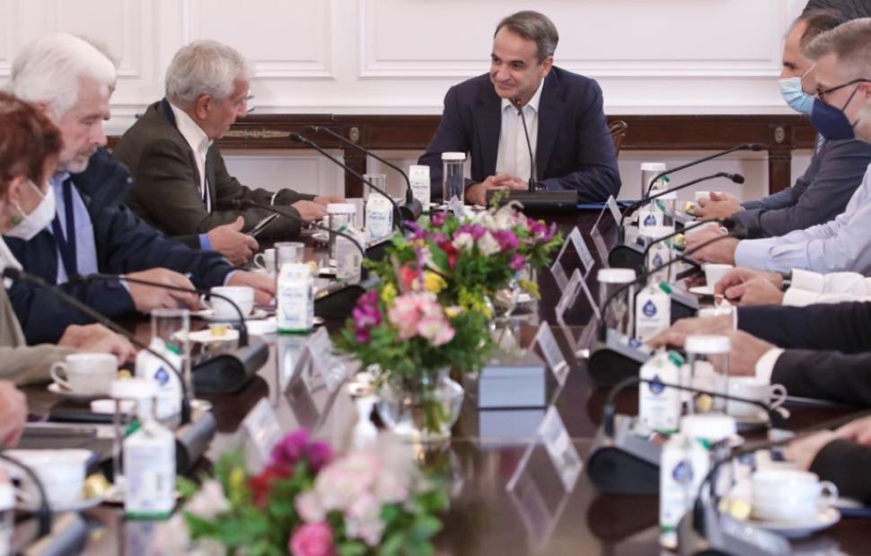 «Σε συνδυασμό με την κατάργηση της εισφοράς αλληλεγγύης για όλους, δημιουργεί ένα ανάχωμα απέναντι στις μεγάλες πληθωριστικές πιέσεις που ξέρω ότι πιέζουν πολύ και τους συνταξιούχους οι οποίοι, εκ των πραγμάτων, είναι εξαρτημένοι από μια σταθερή πηγή εισοδήματος», είπε ο Κυριάκος Μητσοτάκης στην αρχή της συνάντησης.