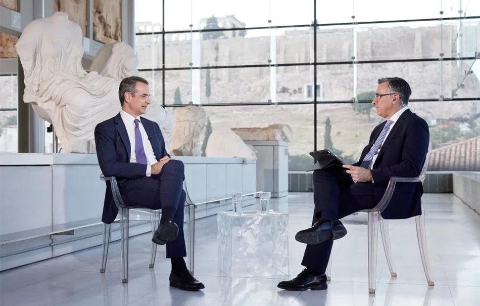 *Κυριάκος Μητσοτάκης:* Κύριε Κουβαρά, κατ’ αρχάς σας ευχαριστώ που μου δίνετε την ευκαιρία να βρεθούμε σε αυτόν τον μοναδικό χώρο, στο Μουσείο της Ακρόπολης και η πρώτη ερώτηση που μου κάνετε συνδέεται με ένα διαχρονικό ιστορικό αίτημα, το οποίο πιστεύω ότι σήμερα εκφράζει την άποψη της συντριπτικής πλειοψηφίας της παγκόσμιας κοινότητας.