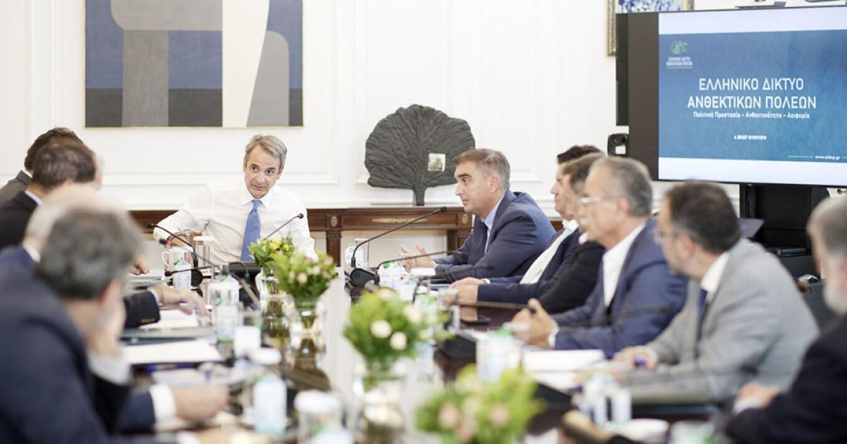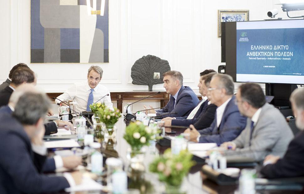 Ο πρωθυπουργός Κυριάκος Μητσοτάκης προήδρευσε σήμερα σε διυπουργική σύσκεψη με αντιπροσωπεία του Ελληνικού Δικτύου Ανθεκτικών Πόλεων, με αντικείμενο την περαιτέρω βελτίωση της συνεργασίας ανάμεσα στην κεντρική κυβέρνηση και στους Δήμους για την ενίσχυση της ανθεκτικότητας πόλεων και περιαστικών περιοχών, ειδικά σε ό,τι αφορά την πολιτική προστασία.