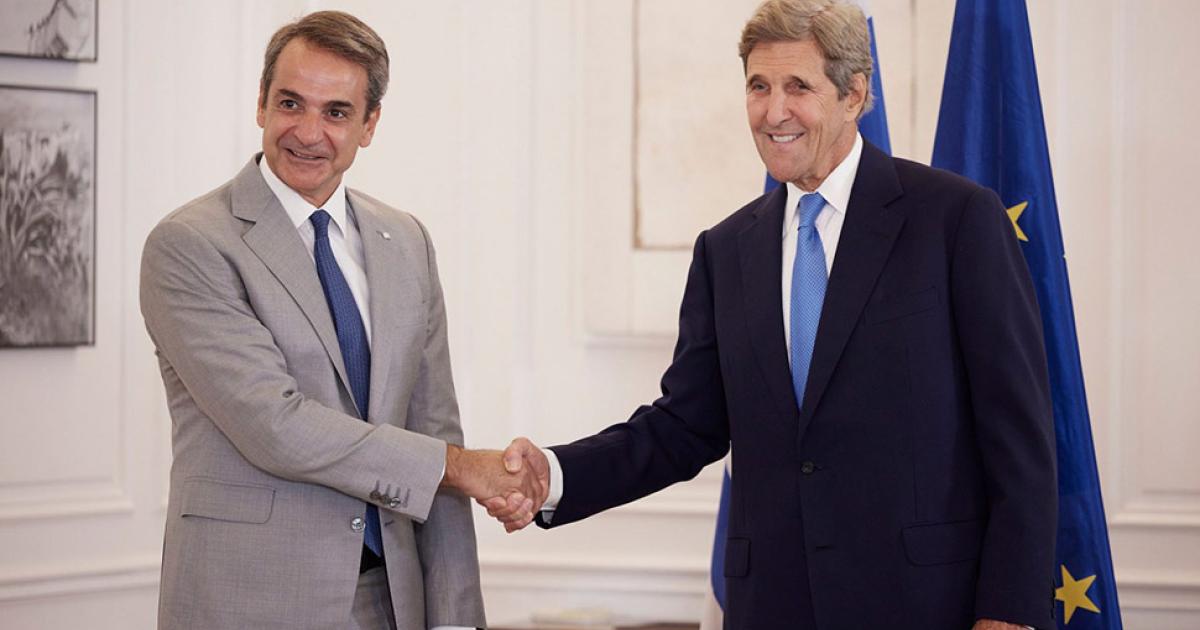 Ο Πρωθυπουργός ενημέρωσε τον κ. Κέρι για τις πρωτοβουλίες που έχει αναλάβει η χώρα μας για την «πράσινη» μετάβαση και τη μείωση των εκπομπών αερίων του θερμοκηπίου, ιδίως στον τομέα της ναυτιλίας, ενόψει και της συμμετοχής τους στην επερχόμενη Σύνοδο COP27 στην Αίγυπτο το Νοέμβριο.