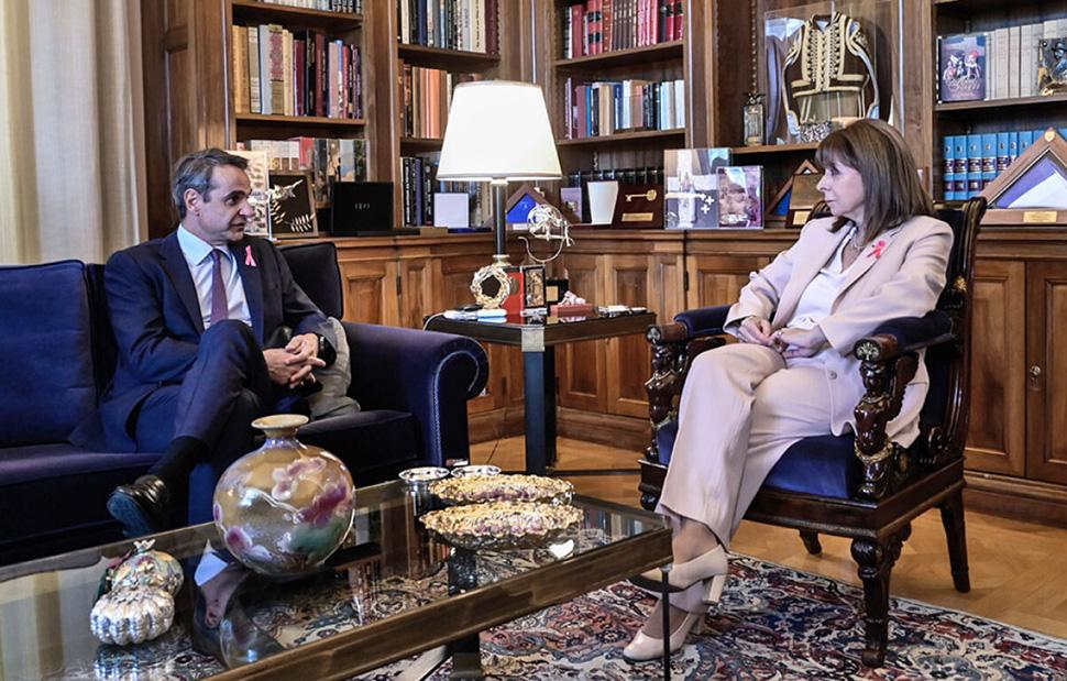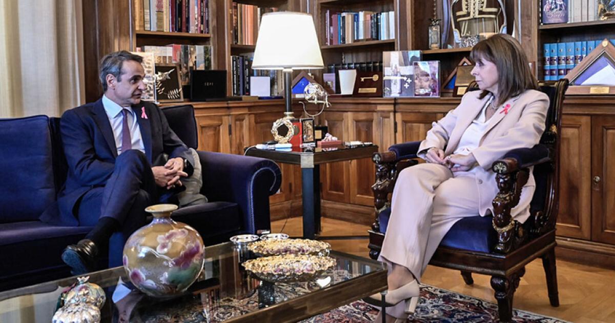 Με την πρόεδρο της Δημοκρατίας, Κατερίνα Σακελλαροπούλου συναντήθηκε στο Προεδρικό Μέγαρο, ο πρωθυπουργός Κυριάκος Μητσοτάκης.