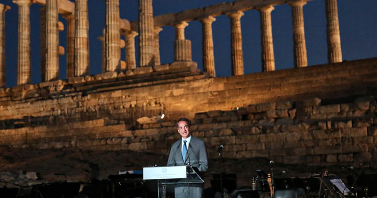 «Με συγκίνηση και μεγάλη χαρά βρίσκομαι ανάμεσά σας, μπροστά από ένα από τα πιο εμβληματικά τοπόσημα της πατρίδας μας. Σε ένα μοναδικής ομορφιάς οικοδόμημα το οποίο εδώ και 2.500 περίπου χρόνια παραμένει διαχρονικός φάρος ιστορίας και πολιτισμού. Το Σούνιο ήταν ανέκαθεν πέρασμα από την Ασία στην Ευρώπη και μία πύλη προς την ελληνική ενδοχώρα» είπε αρχικά, ο κ. Μητσοτάκης.