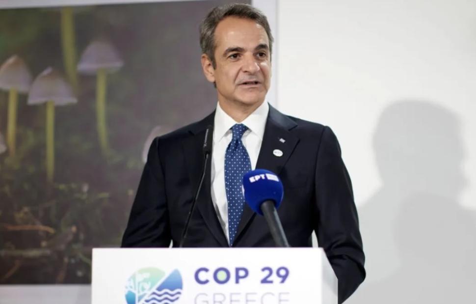 Νωρίτερα, ο Πρωθυπουργός παρέστη στα εγκαίνια του ελληνικού περιπτέρου στην COP29, όπου τόνισε ότι η Ελλάδα είναι πρωτοπόρος στην ενεργειακή μετάβαση, έχοντας μειώσει τις εκπομπές ρύπων κατά περίπου 45% σε σύγκριση με το 2005, σημειώνοντας ότι η στροφή σε καθαρές τεχνολογίες ηλεκτροπαραγωγής γεννά νέες επενδυτικές ευκαιρίες στη χώρα. Ο Κυριάκος Μητσοτάκης σημείωσε πως η Ελλάδα μετατρέπεται σταδιακά σε εξαγωγέα ενέργειας, επισημαίνοντας τη σημασία ενός εκτενέστερου δικτύου διασυνδέσεων με άλλες ευρωπαϊκές χώρες.