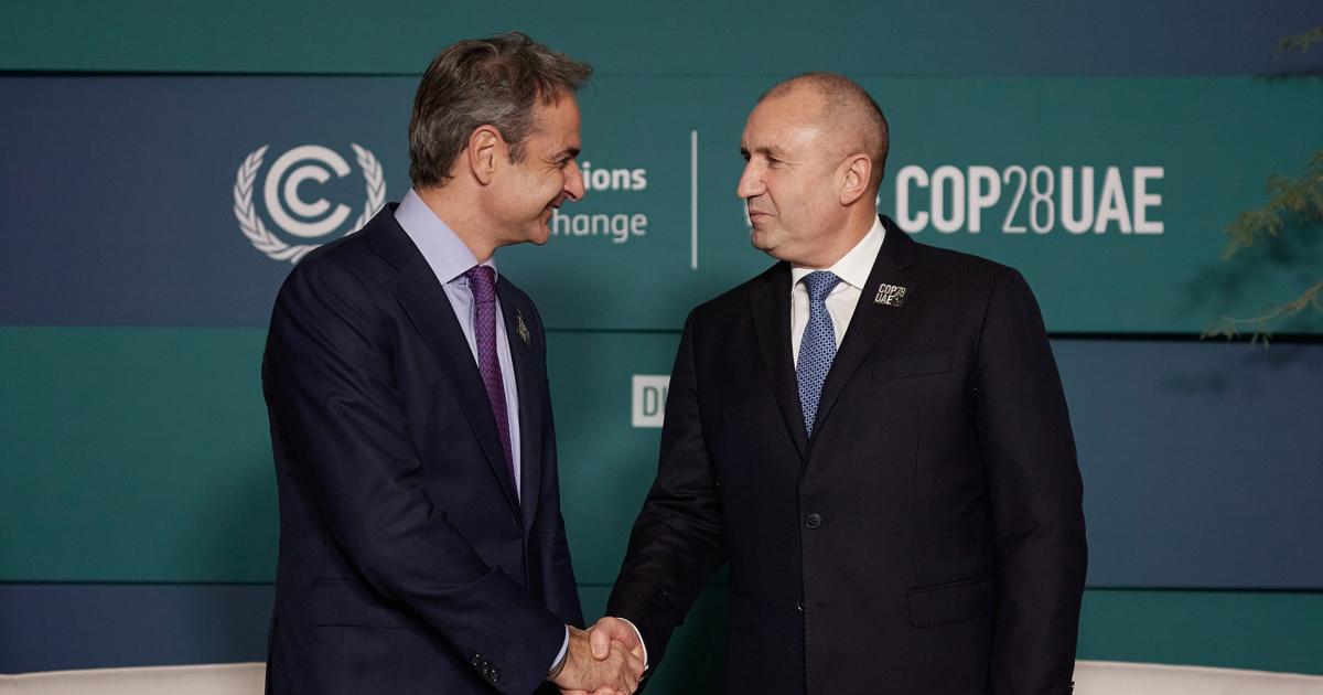 Με τον Πρόεδρο της Βουλγαρίας, Ρούμεν Ράντεφ, συναντήθηκε ο Κυριάκος Μητσοτάκης στο περιθώριο της 28ης Διάσκεψης του Οργανισμού Ηνωμένων Εθνών (ΟΗΕ) για την Κλιματική Αλλαγή (COP28) στο Ντουμπάι.