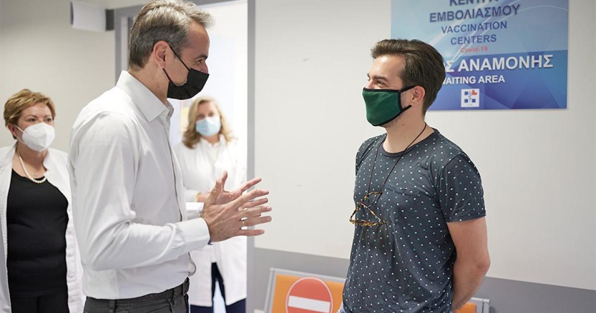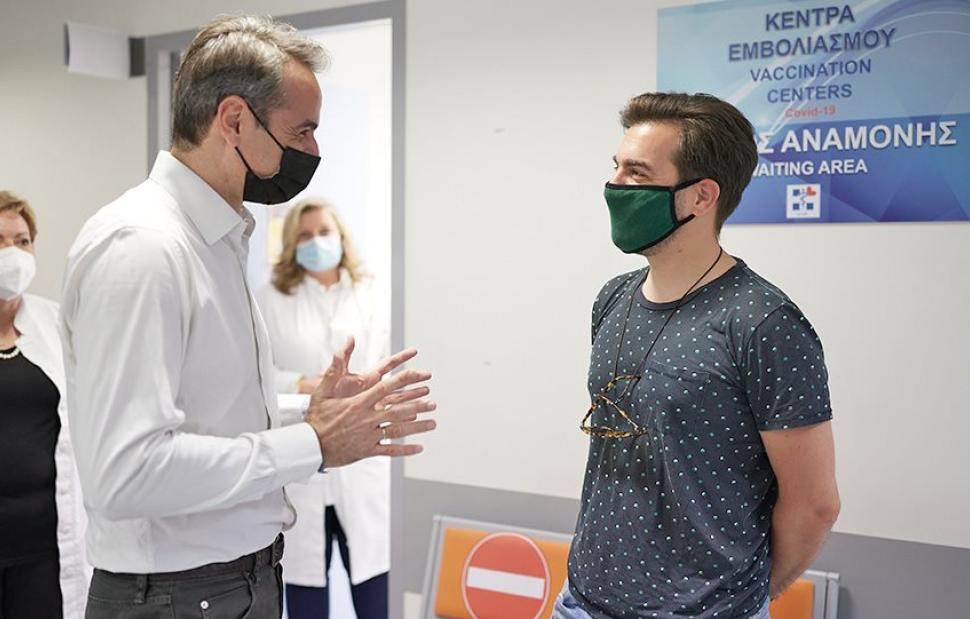 «Έσπευσες αμέσως φαντάζομαι να εμβολιαστείς» ανέφερε ο Πρωθυπουργός σε έναν πολίτη 35 ετών που περίμενε να εμβολιαστεί. «Ξεκάθαρα» απάντησε εκείνος.