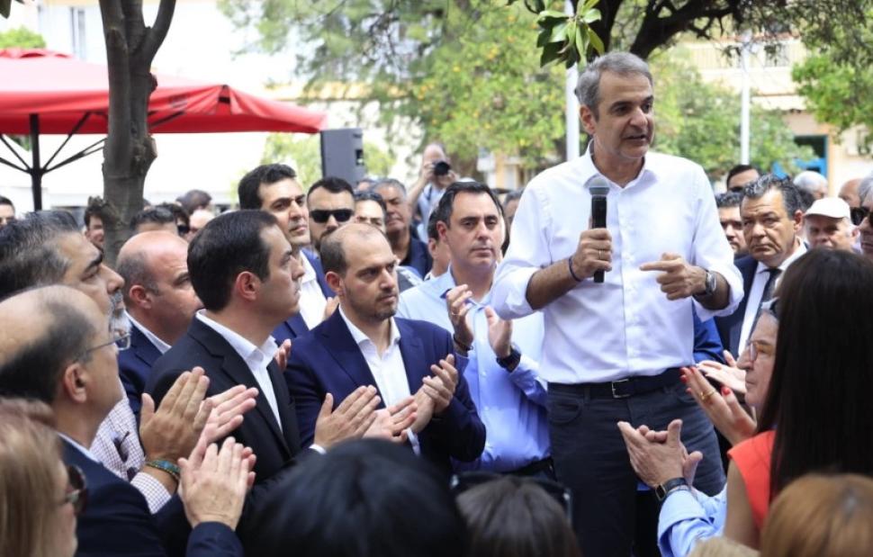 Αφού ο Κυριάκος Μητσοτάκης επισκέφθηκε το Κέντρο Υγείας, έφτασε σε κεντρική πλατεία της περιοχής, όπου συνομίλησε με πολίτες.