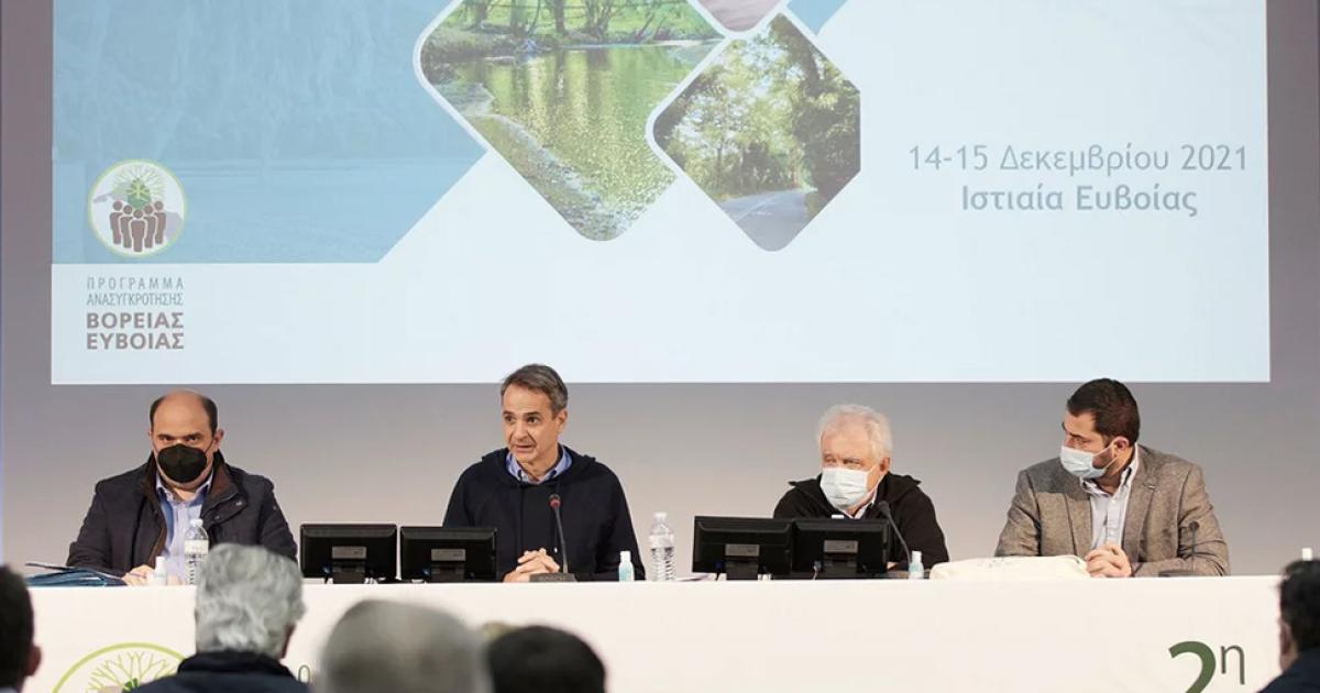 «Στόχος μας είναι να μετατρέψουμε μια φυσική καταστροφή σε μια μεγάλη ευκαιρία αναγέννησης. Αυτός είναι ο στόχος μας και θα τον πετύχουμε», δήλωσε ο Πρωθυπουργός Κυριάκος Μητσοτάκης κατά την ευρεία σύσκεψη στην Ιστιαία, που διήρκεσε περισσότερες από 5 ώρες και στην οποία παρουσιάστηκε αναλυτικά το σχέδιο ανασυγκρότησης της βόρειας Εύβοιας, μετά τις πυρκαγιές του καλοκαιριού.