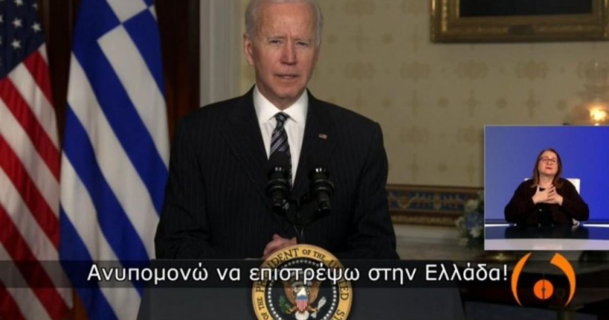 «Την Ημέρα της Ελληνικής Ανεξαρτησίας γιορτάζουμε την ιστορία και τις αξίες που ενώνουν τις Ηνωμένες Πολιτείες της Αμερικής και την Ελληνική Δημοκρατία. Οι ιδρυτικοί πατέρες του έθνους μας εμπνεύστηκαν από το παράδειγμα της αθηναϊκής δημοκρατίας για να διαμορφώσουν το Σύνταγμά μας», ανέφερε ο Τζο Μπάιντεν.
