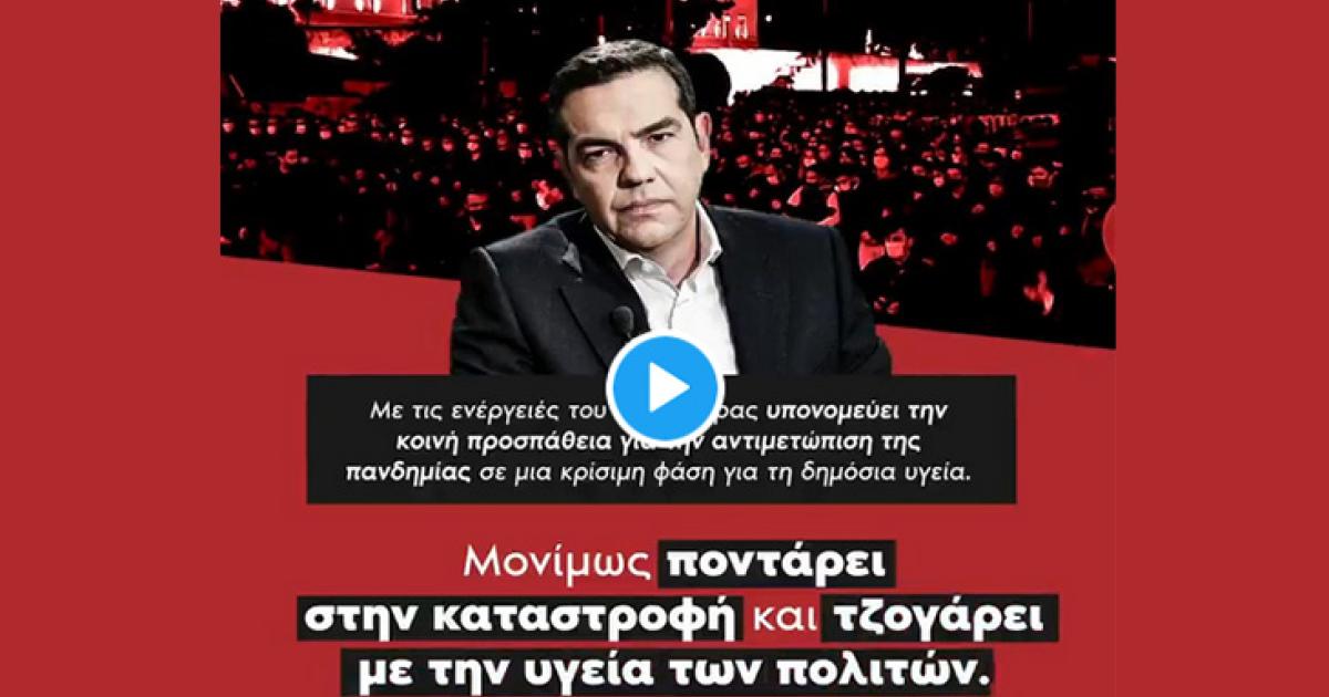 Μετά και το κάλεσμα της νεολαίας του ΣΥΡΙΖΑ για τη συγκέντρωση της Νέας Σμύρνης, η Νέα Δημοκρατία κατηγορεί ανοικτά τον πρόεδρο του ΣΥΡΙΖΑ ότι υπονομεύει την κοινή προσπάθεια για την αντιμετώπιση της πανδημίας προκειμένου να αποκομισει πολιτικά οφέλη.