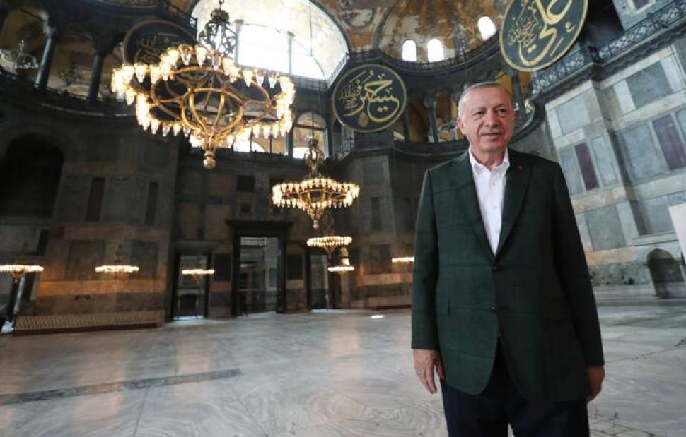 Σε νέα πρόκληση για την Αγία Σοφία προχώρησε ο Πρόεδρος της Τουρκίας, Ρετζέπ Ταγίπ Ερντογάν. Ο Τούρκος Πρόεδρος είπε ότι «η μετατροπή της Αγίας Σοφίας σε τζαμί ήταν ένα όνειρο γενεών όπως αρμόζει στον πορθητή Μωάμεθ».