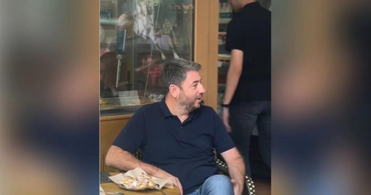 Ο κ. Ανδρουλάκης μάλιστα ακούγεται σε μία στιγμή του βίντεο να λέει «δεν τρώω να ξέρεις, έχω φάει», ενώ στο επόμενο καρέ τον δείχνει ένα πιάτο μπουγάτσα μπροστά του.