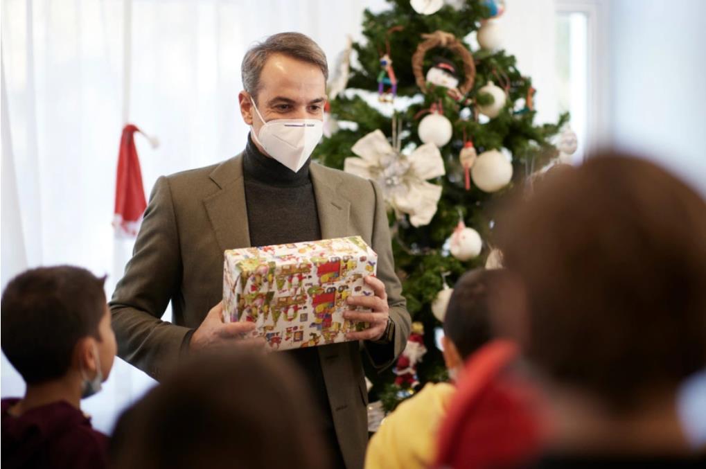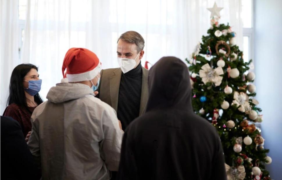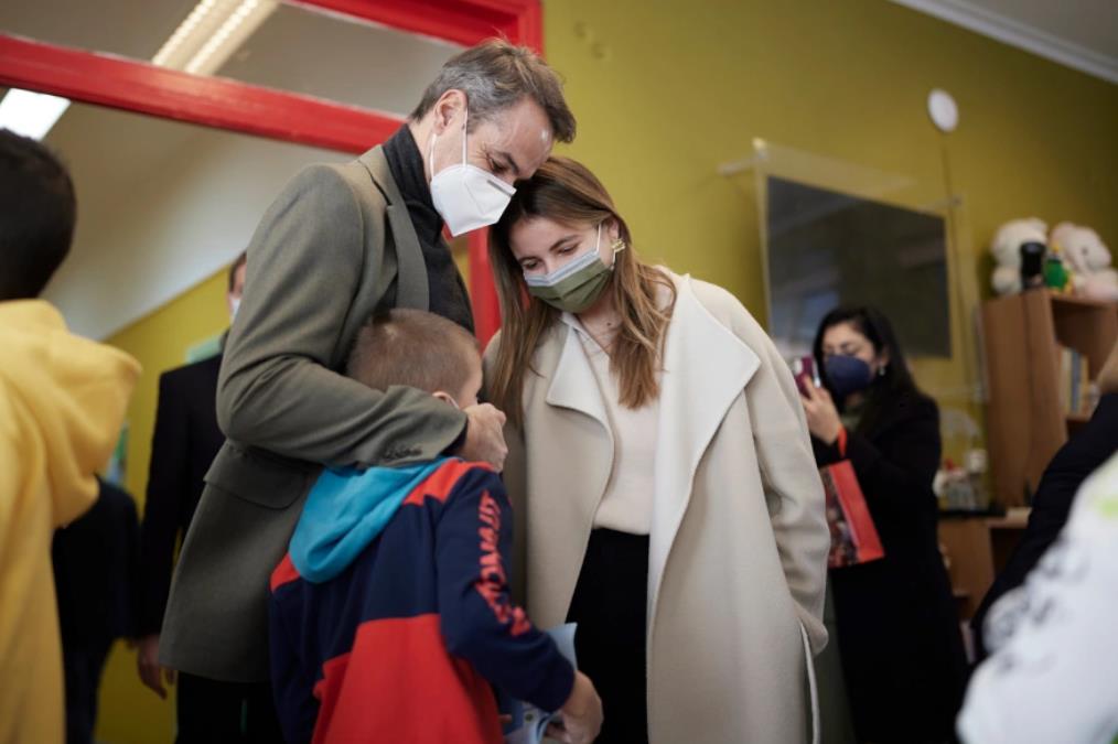 Ο Κυριάκος Μητσοτάκης, μαζί με την υφυπουργό Πρόνοιας και Κοινωνικής Αλληλεγγύης, Δόμνα Μιχαηλίδου και την κόρη του Δάφνη, άκουσε τα κάλαντα των Χριστουγέννων και γιορτινά τραγούδια από τα παιδιά της μονάδας, τους μοίρασε δώρα και συζήτησε μαζί τους για τις ανησυχίες τους, το σχολείο και τα αγαπημένα τους αθλήματα.