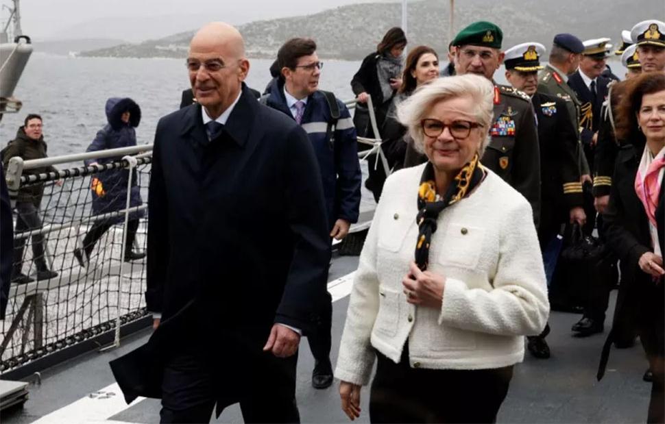 Στον ναύσταθμο Σαλαμίνας ο υπουργός Εθνικής Άμυνας Νίκος Δένδιας υποδέχτηκε τη Γαλλίδα ομόλογό του Κατρίν Βοτρέν, με τη συνάντηση να εστιάζει στη συνεργασία στα εξοπλιστικά προγράμματα και στην ανανέωση της ελληνογαλλικής αμυντικής συμφωνίας, με έμφαση στην περαιτέρω ενίσχυση της στρατιωτικής συνεργασίας των δύο χωρών.