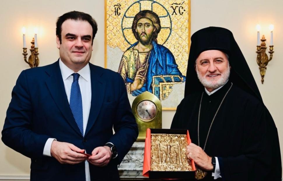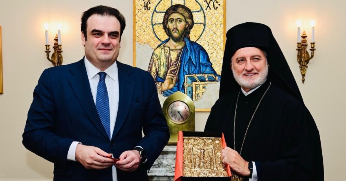 Με τον Αρχιεπίσκοπο Αμερικής Ελπιδοφόρο συναντήθηκε ο υπουργός Εθνικής Οικονομίας και Οικονομικών, Κυριάκος Πιερρακάκης στην έδρα της Ελληνορθόδοξης Αρχιεπισκοπής Αμερικής. Τον υπουργό συνόδευε η Γενική Πρόξενος της Ελλάδας στη Νέα Υόρκη, Ιφιγένεια Καναρά.