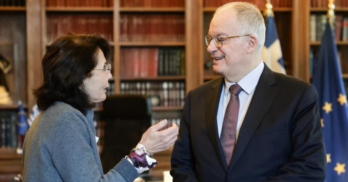 Tη Σύμβουλο για το Κλίμα και τη Θαλάσσια οικονομία σε διεθνείς οργανισμούς και πρώην Επίτροπο Θαλάσσιας Πολιτικής και Αλιείας της Ευρωπαϊκής Ένωσης Μαρία Δαμανάκη υποδέχτηκε στο Προεδρικό Μέγαρο ο Κωνσταντίνος Τασούλας.