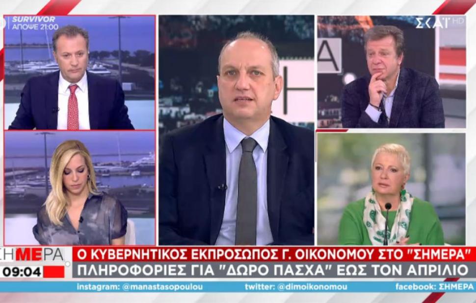 Με αφορμή το πρωτοσέλιδο των «Νέων» πως η κυβέρνηση ετοιμάζει «δώρο» Πάσχα με τη μορφή στοχευμένου επιδόματος, ο Γιάννης Οικονόμου σχολίασε ότι υπάρχουν σενάρια και ιδέες που προφανώς συζητούνται, ωστόσο η Κυβέρνηση θα ανακοινώσει τις λεπτομέρειες όταν είναι σίγουρη.