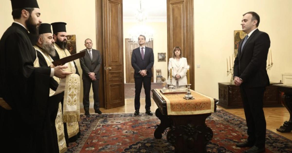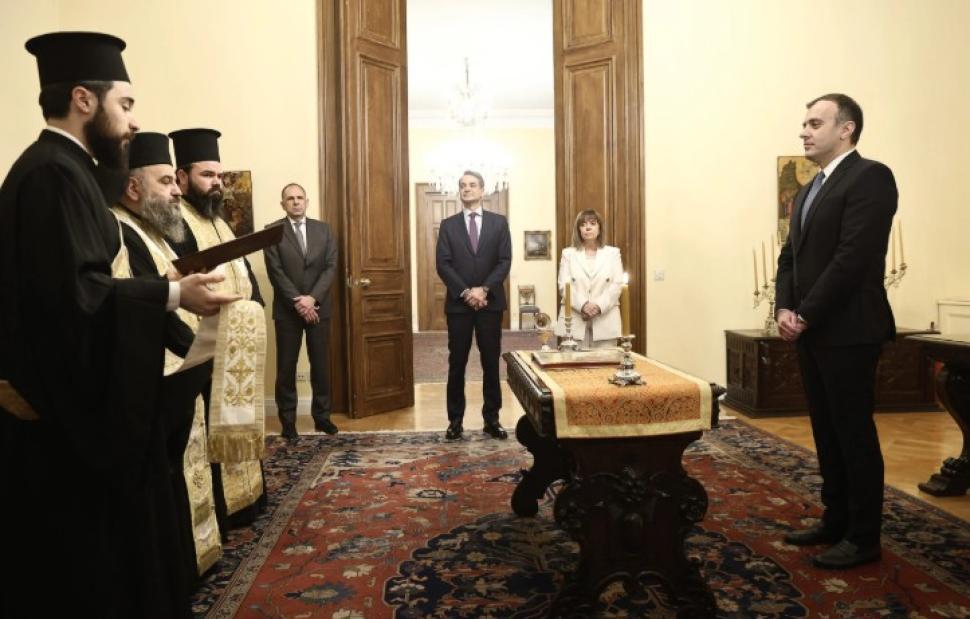 Στην ορκωμοσία παρευρέθηκε και ο υπουργός Εξωτερικών, Γιώργος Γεραπετρίτης.