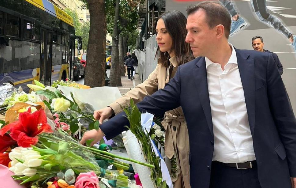 Λουλούδια στο μνημείο για τους νεκρούς της εμπρηστικής επίθεσης στη Marfin άφησαν οι υποψήφιοι βουλευτές Επικρατείας του ΠΑΣΟΚ-Κινήματος Αλλαγής, Παναγιώτης Δουδωνής, Δημήτρης Μάντζος και Ελένη Χρονοπούλου.