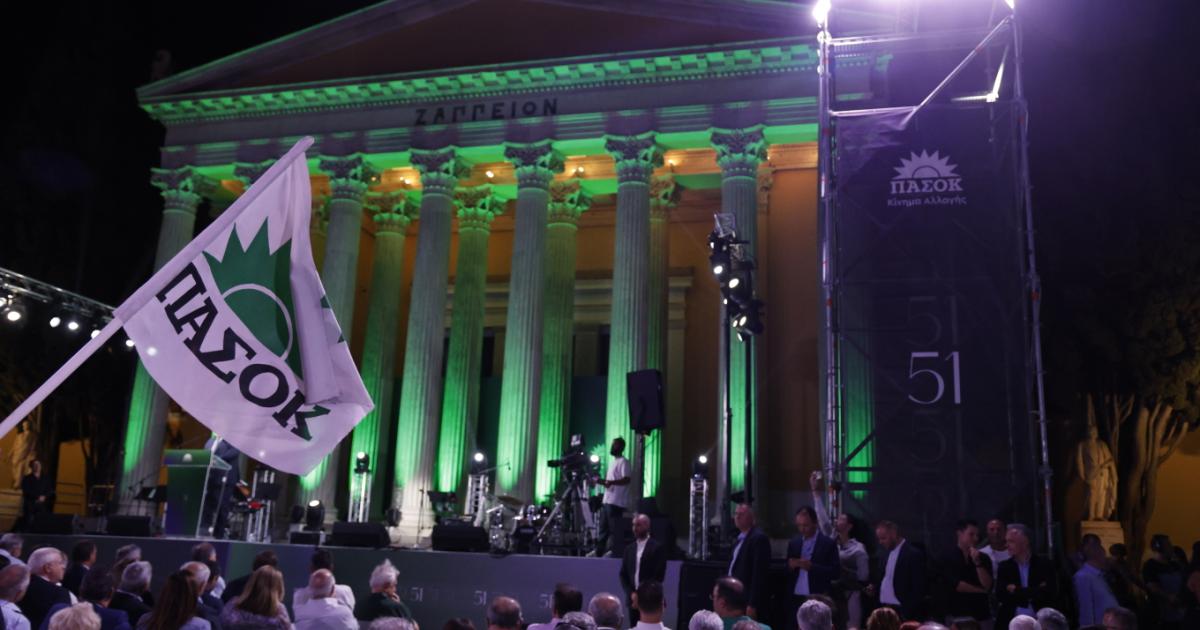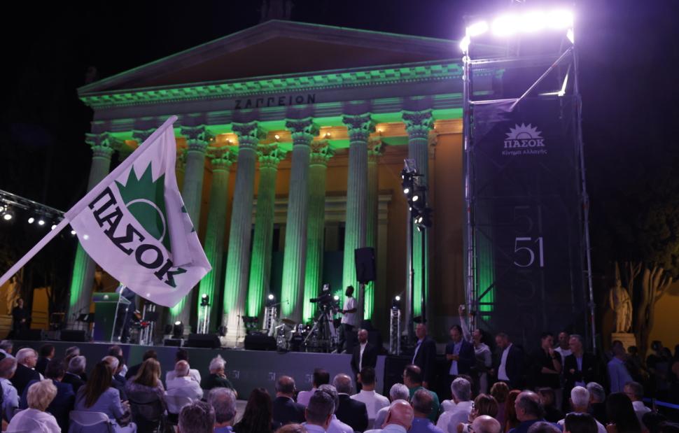 Στο Ζάππειο πραγματοποιείται η εκδήλωση του ΠΑΣΟΚ-ΚΙΝΑΛ για τον εορτασμό της 51ης επετείου από την Ιδρυτική Διακήρυξη του ΠΑΣΟΚ.