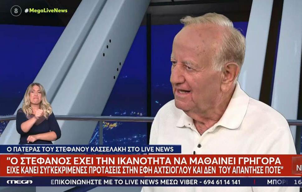 Ο πατέρας του Στέφανου Κασσελάκη, Θεόδωρος Κασσελάκης φιλοξενήθηκε στην εκπομπή Live News με τον Νίκο Ευαγγελάτο τονίζοντας ότι είναι απόλυτα σίγουρος για τον γιο του, ενώ επισήμανε ότι προέρχεται από μια δημοκρατική οικογένεια.
