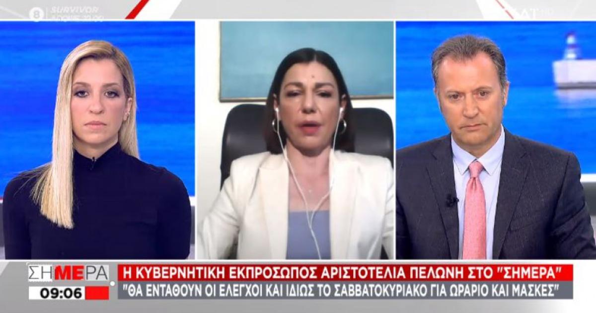 Εντατικοποιούνται οι έλεγχοι τα Σαββατοκύριακα, κυρίως στην εστίαση για την τήρηση αποστάσεων και του ωραρίου, αλλά και για τη χρήση μάσκας. Αυτό έκανε γνωστό η κυβερνητική εκπρόσωπος, Αριστοτελία Πελώνη, μιλώντας στον ΣΚΑΪ.