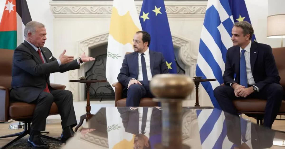 Συνάντηση είχε ο Πρωθυπουργός, Κυριάκος Μητσοτάκης, με τον Πρόεδρο της Κυπριακής Δημοκρατίας, Νίκο Χριστοδουλίδη και τον Βασιλιά της Ιορδανίας, Αμπντάλα, στο πλαίσιο της 4ης Συνόδου Κορυφής Κύπρου-Ελλάδας-Ιορδανίας, στη Λευκωσία.