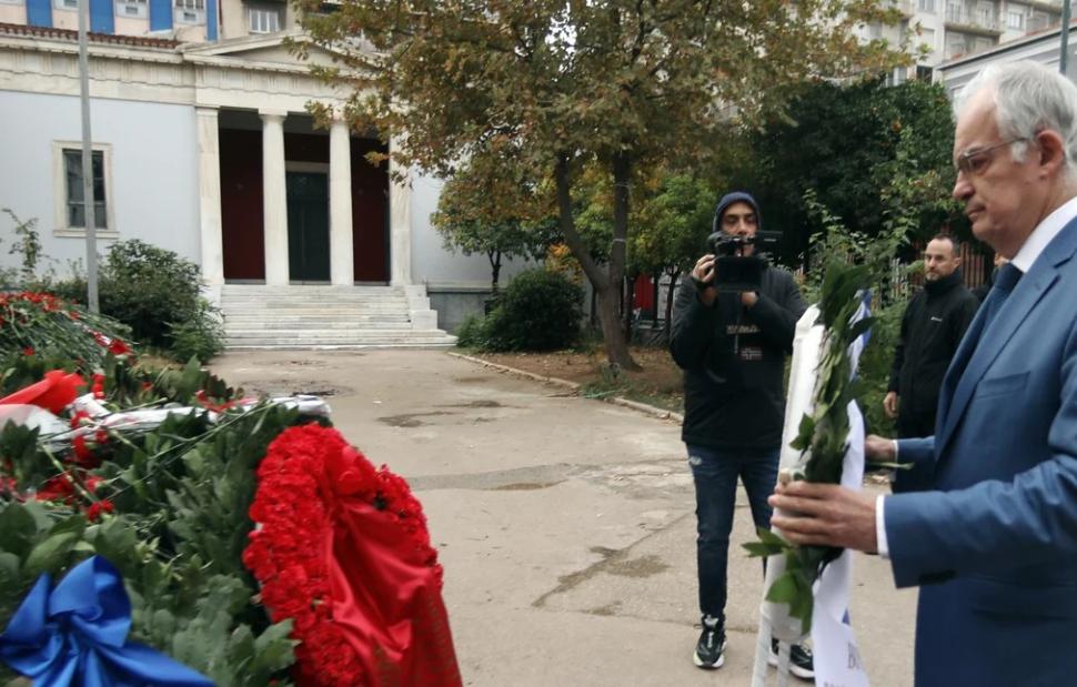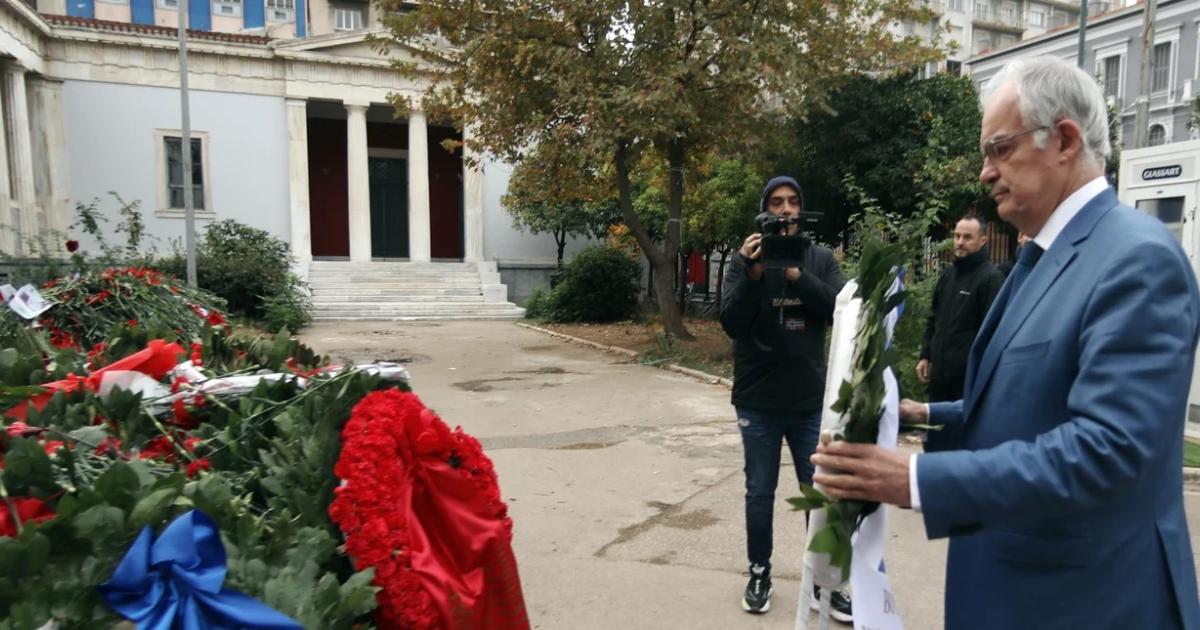 Δάφνινο στεφάνι κατέθεσε το πρωί στον χώρο του Πολυτεχνείου ο Πρόεδρος της Βουλής των Ελλήνων κ. Κωνσταντίνος Τασούλας, στη μνήμη όσων αγωνίστηκαν για την αποκατάσταση της Δημοκρατίας από την χούντα.