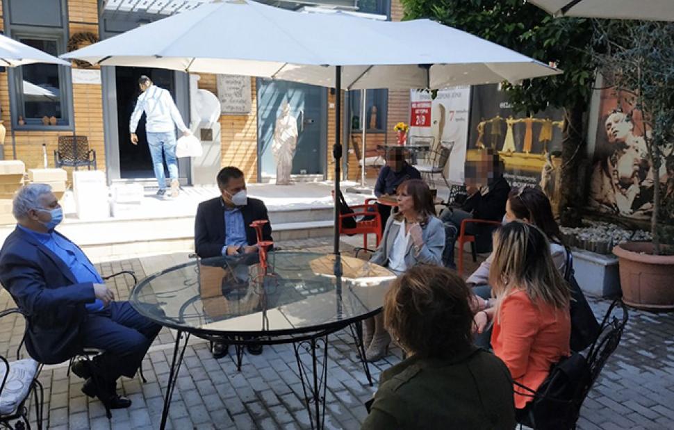 Ο Γραμματέας της Πολιτικής Επιτροπής της ΝΔ Γιώργος Στεργίου δήλωσε μετά την επίσκεψη: «Οι άνθρωποι του πολιτισμού και ειδικότερα οι ηθοποιοί δέχθηκαν μεγάλο πλήγμα λόγω της πανδημίας. Στην πατρίδα μας και παρά τις επιπλέον δυσκολίες που προκαλούν τα χρόνια διαρθρωτικά ζητήματα του κλάδου, η πολιτεία βρίσκει τρόπους για να συμπαρασταθεί σε χιλιάδες καλλιτέχνες και δημιουργούς. Τριακόσια και πλέον εκατομμύρια ευρώ έχουν ήδη διατεθεί για να αμβλυνθούν οι οικονομικές επιπτώσεις. Τώρα σχεδιάζεται με προσοχή το επόμενο βήμα της σταδιακής έναρξης όλων των καλλιτεχνικών δρώμενων».Στην επίσκεψη συμμετείχαν, επίσης, η Γραμματέας Ποιότητας Ζωής & Εθελοντισμού της ΝΔ Πίστη Κρυσταλλίδου, η Γραμματέας Αγροτικών Φορέων Μαίρη Τριανταφυλλοπούλου, το μέλος της Πολιτικής Επιτροπής και εκπρόσωπος της Γραμματείας Εργαζομένων στον Ιδιωτικό και Δημόσιο Τομέα Νάνσυ Δάβαλου, η επικεφαλής της Ειδικής Κομματικής Οργάνωσης Πολιτιστικών Φορέων Αντιγόνη Κανάκη και ο συντονιστής της Γραμματείας Παραγωγικών Τομέων Γιώργος Κουράσης.
