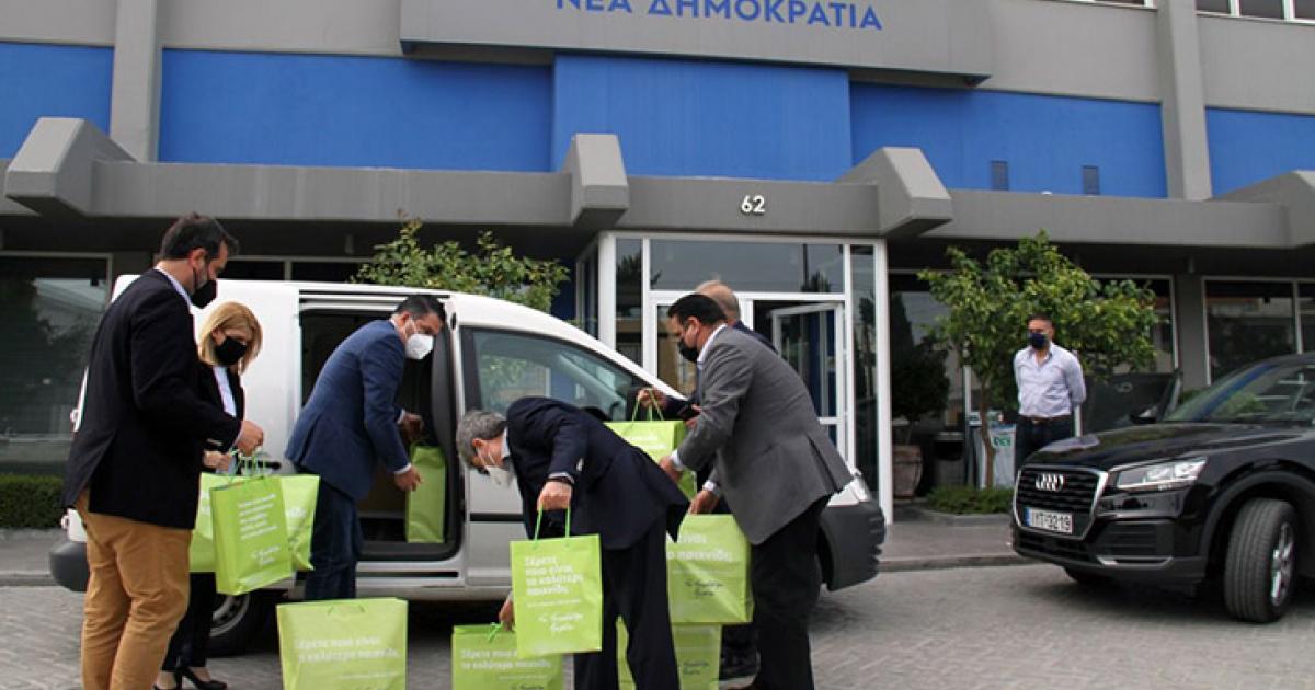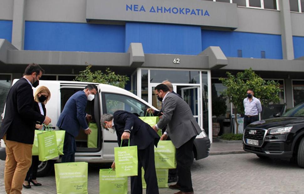 Τα στελέχη της Νέας Δημοκρατίας προσέφεραν εξειδικευμένα υλικά για τη διευκόλυνση της λειτουργίας του εργαστηρίου καθώς και εκπαιδευτικά βοηθήματα για τους μαθητές. Ο διευθυντής του ΕΕΕΕΚ ανταπέδωσε με χειροποίητα δώρα των παιδιών.